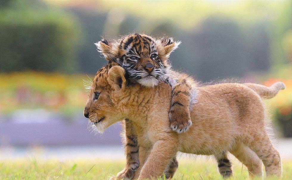 日本獅崽和虎崽親密無間 萌態(tài)可掬成網(wǎng)紅