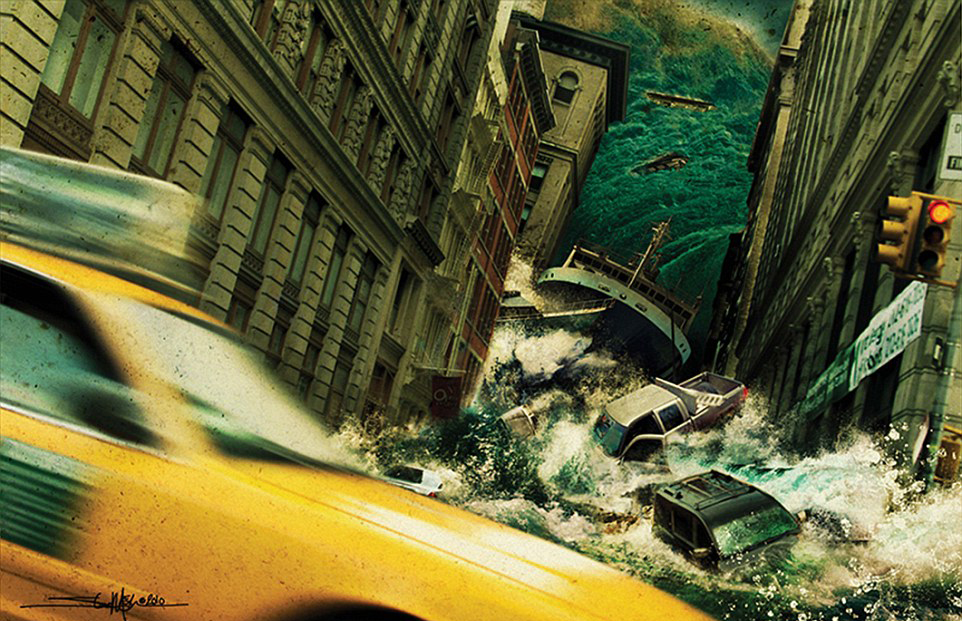 國(guó)際在線專稿:據(jù)英國(guó)《每日郵報(bào)》12月23日?qǐng)?bào)道,加拿大藝術(shù)家史蒂夫·麥吉近日發(fā)布許多自己創(chuàng)作的世界末日?qǐng)D,幾乎包括了每種導(dǎo)致世界被終結(jié)的可能情況,比如大洪水、超級(jí)地震等。此外,還有飛機(jī)墜毀在紐約市中心、悉尼港出現(xiàn)黑洞、法國(guó)海岸大規(guī)模漏油等場(chǎng)景。