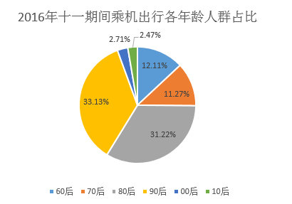 “80后”出行人數(shù)雖已不是第一,卻仍占到總?cè)藬?shù)的31.22%,依舊是乘機(jī)出游的主流人群,與90后共同占領(lǐng)了整個(gè)市場(chǎng)的半壁江山。