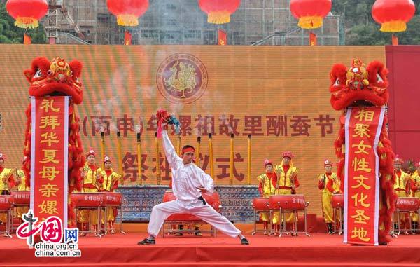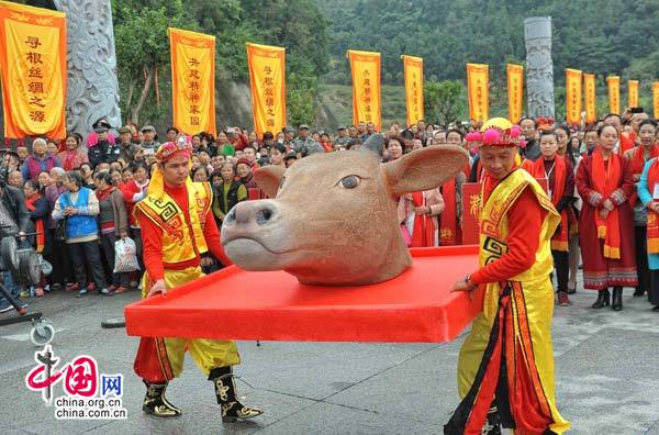10月15日,為進一步弘揚華夏母親嫘祖的人文精神,全力構(gòu)建海內(nèi)外炎黃子孫共同的心靈家園,近五千中華兒女代表相聚在四川省綿陽市鹽亭縣參加2016(丙申)年華夏母親嫘祖故里酬蠶節(jié)民間祭祖儀式,禮拜華夏母親嫘祖,祈福中華民族偉大復興。