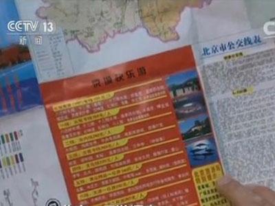 記者在調查中,通過詢問同行游客,發(fā)現(xiàn)其報名參團的途徑,主要分為街邊攬客人員推薦,和通過下榻酒店、火車站車站、故宮鳥巢等主要景點附近發(fā)放的小廣告電話預定兩種。不僅如此,一般售賣的北京地圖、交通圖等,也暗藏著非法一日游的玄機,甚至還出現(xiàn)臨時攬客上車的現(xiàn)象。