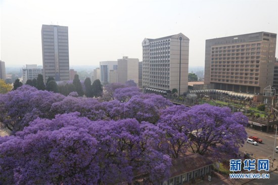 哈拉雷:非洲“花城”藍(lán)花楹盛開(kāi)(組圖)