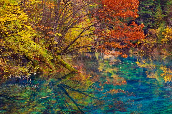 九寨溝位于四川省阿壩藏族羌族自治州,被聯(lián)合國教科文組織列為世界自然遺產(chǎn)。其景色,被譽(yù)為“美得不似人間”。這里動植物資源豐富,種類繁多,原始森林遍布,棲息著大熊貓等十多種稀有和珍貴野生動物,使得九寨溝四季皆美,仿若童話。
