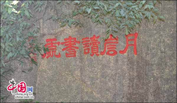 環(huán)顧四周,戴先生的《梅屋》景致,生龍活虎。四周粗略走個(gè)通頭,遺憾的是巨石周圍長(zhǎng)滿植被,找不到可以爬上梅屋屋頂(刻有“釣月臺(tái)”的石塊)的路影,也就不能高空領(lǐng)略先人們凈空坐懷“釣月臺(tái)”上撫琴攬?jiān),憂而不傷的情懷。