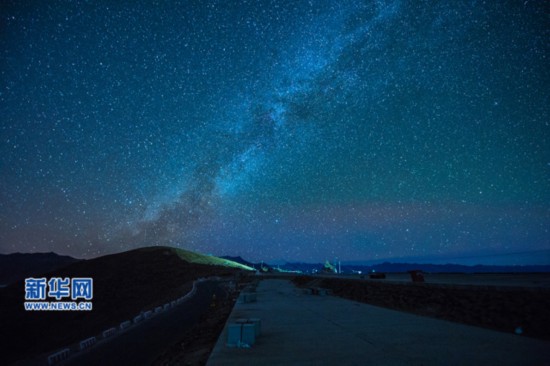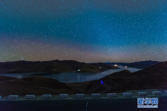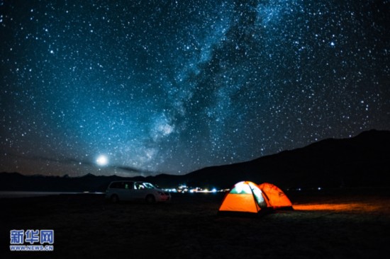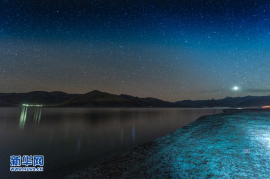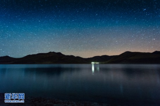11月22日晚羊湖的星空。新華網(wǎng)旦增尼瑪曲珠攝