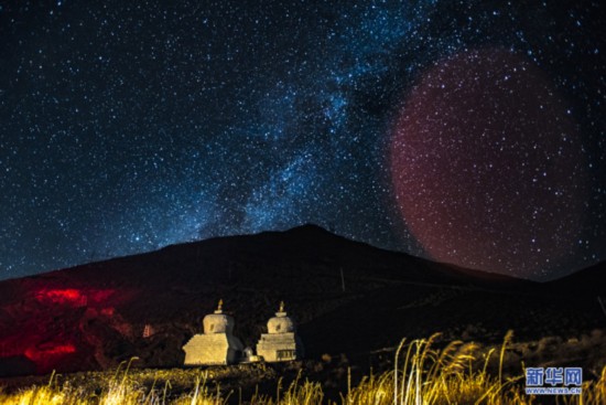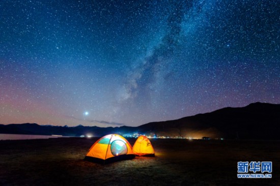 11月22日晚羊湖的星空。新華網(wǎng)達(dá)娃攝