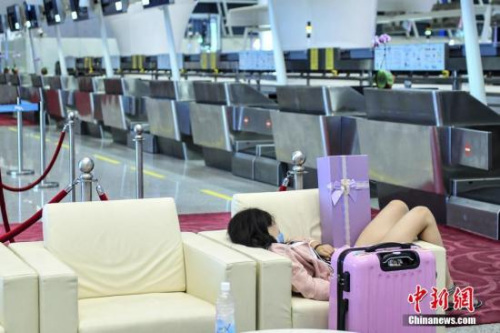 資料圖:8月1日,深圳機場,一名旅客因航班取消在出發(fā)大廳內(nèi)休息。中新社記者 陳驥旻 攝