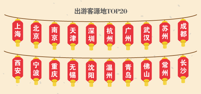 今年春節(jié),哪些城市的消費者最熱衷外出旅游?客源地人氣排行榜顯示,出游人次排名前20的城市包括上海、北京、南京、天津、深圳、杭州、廣州、武漢、蘇州、成都、西安、寧波、重慶、無錫、沈陽、溫州、青島、佛山、常州、長沙。
