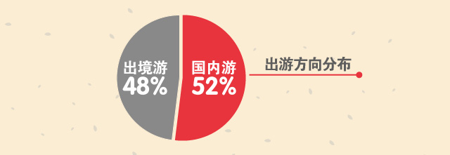 報告顯示,春節(jié)期間,52%的游客選擇國內(nèi)旅游,48%的游客選擇出境旅游。