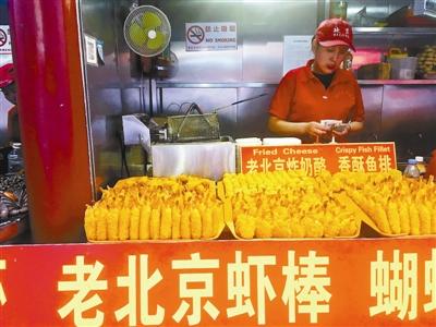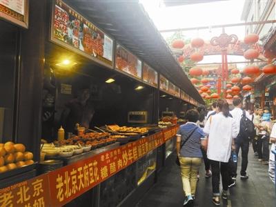 位于王府井的小吃一條街上出現(xiàn)了部分“冒名”的老北京小吃 攝影/本報(bào)記者 孔令晗