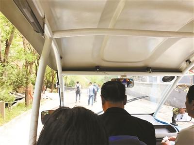 最大的問題在于,這段山路為機(jī)動(dòng)車、電瓶車和行人混行,并沒有明顯的步行道,行人步行最快也需要1小時(shí)左右的時(shí)間,只能緊貼山壁行走。下午3點(diǎn)左右北青報(bào)記者乘坐電瓶車進(jìn)入,可以同時(shí)看到最少七撥游客在路上行走。