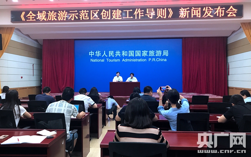 2017年6月12日北京,國家旅游局正式發(fā)布《全域旅游示范區(qū)創(chuàng)建工作導(dǎo)則》,圖為新聞發(fā)布會(huì)現(xiàn)場(chǎng)。(央廣網(wǎng)記者何微攝)