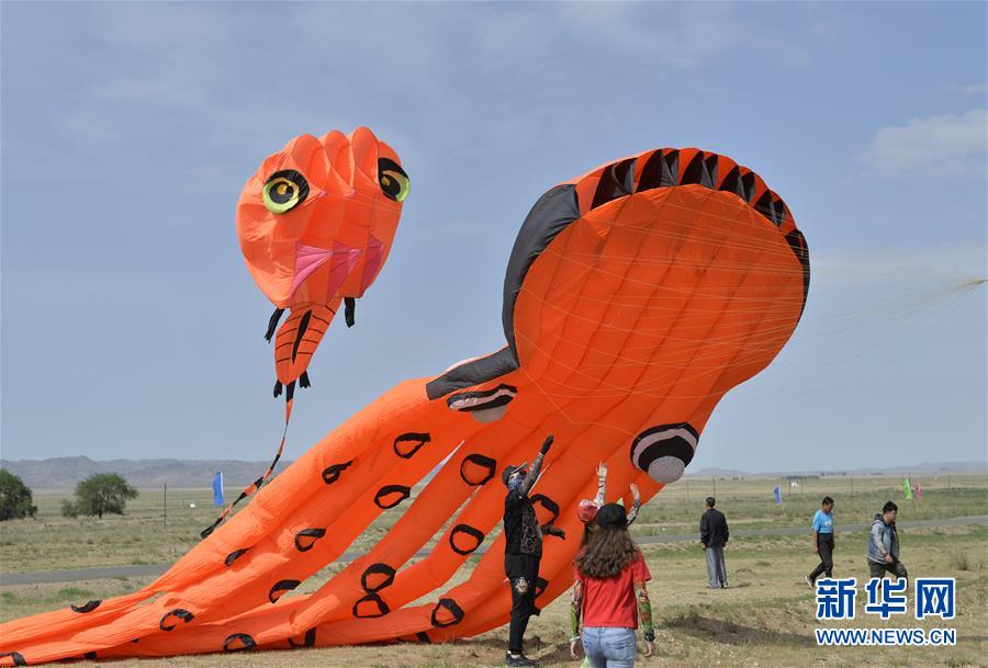 6月18日,在內(nèi)蒙古巴彥淖爾市烏拉特中旗的草原上,風(fēng)箏運動愛好者在放飛大型軟體風(fēng)箏。新華社發(fā)(王正 攝) 6月18日,在內(nèi)蒙古巴彥淖爾市烏拉特中旗的草原上,風(fēng)箏運動愛好者在放飛大型軟體風(fēng)箏。