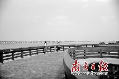 來西部看海,有哪些不同于大小梅沙的特色?記者來到不久前剛開放的西灣紅樹林公園。不同于東部大小梅沙的碧海藍天和金色沙灘,在這里的海岸看到的是灘涂、樹木以及遠山和島嶼。公園設(shè)計上也不同于東部的亞熱帶風(fēng)情,而采用了嶺南風(fēng)格和歷史文化元素。南昌涌出?谠O(shè)計的步云橋,連接兩岸復(fù)原的固戍碼頭,讓人感受到昔日西鄉(xiāng)商貿(mào)文化的輝煌,沿著步云橋往北,仿佛穿越歷史的煙云,看到固戍碉樓挺立于時空之中。由于公園靠近寶安機場,不時能看到飛機從沿江高速上飛過,還有高鐵從頭頂呼嘯而過,這些都成了公園的獨特景致。