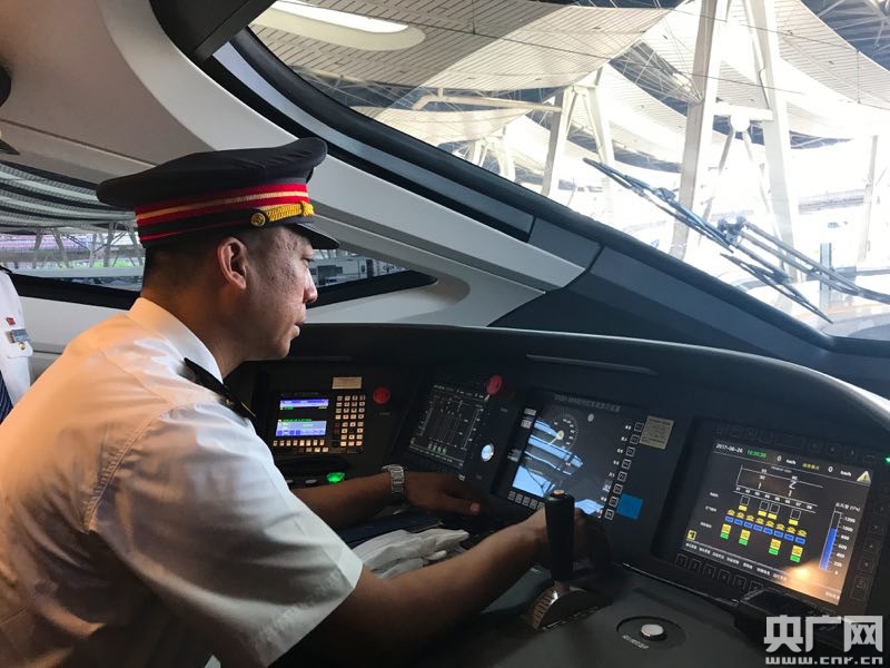 北京機(jī)務(wù)段京滬高鐵車隊(duì)隊(duì)長麻然松擔(dān)任“復(fù)興號(hào)”駕駛工作,麻然松是第一代高鐵駕駛員。 -