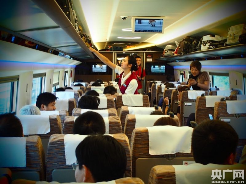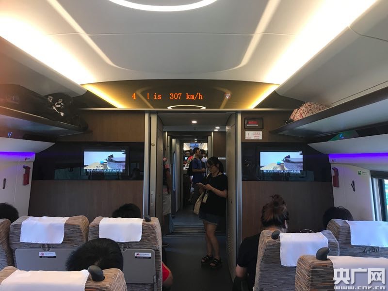 復(fù)興號(hào)的內(nèi)部空間,現(xiàn)在列車運(yùn)行時(shí)速307km/h。 -
