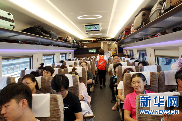 旅客在G123列車內休息。新華網 郭香玉 攝