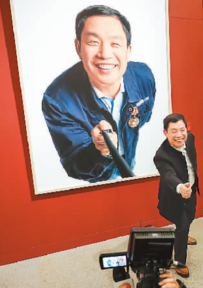 中國(guó)國(guó)家博物館舉行“擼起袖子加油干——‘中國(guó)夢(mèng),勞動(dòng)美’”影像展。圖為謝子龍?jiān)谧约盒は褡髌非啊?/p>