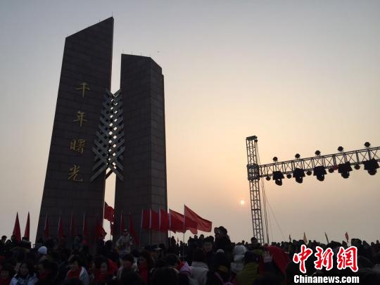 圖為在千年曙光碑下的新年第一輪太陽 孔雁婷 攝