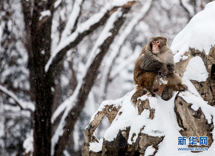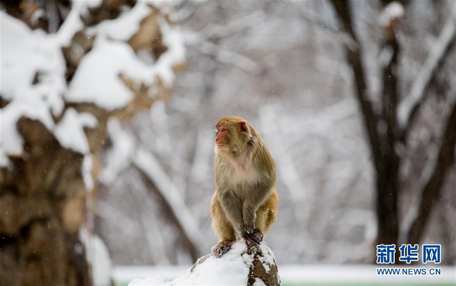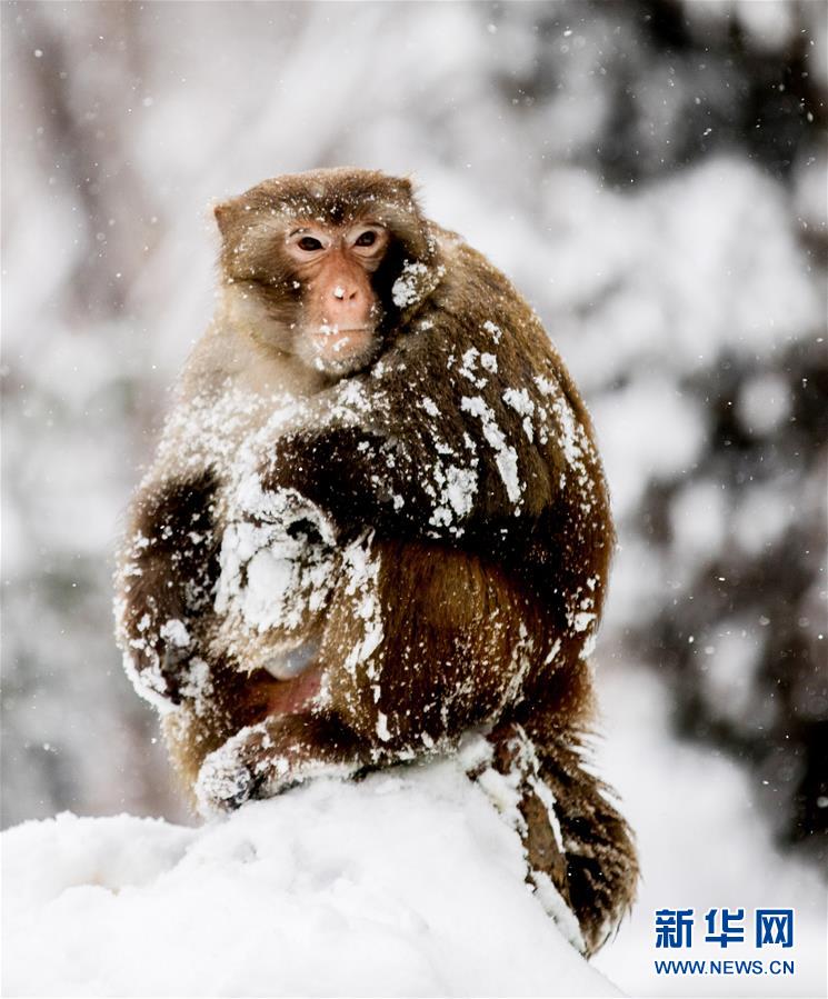 1月4日,安徽省淮北市相山公園的猴子獨(dú)立雪中。 當(dāng)日,淮北迎來一場(chǎng)強(qiáng)降雪。新華社發(fā)(王文 攝) -