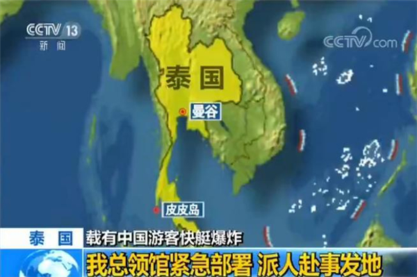14日,泰國(guó)知名旅游景點(diǎn)皮皮島附近發(fā)生快艇發(fā)動(dòng)機(jī)爆炸事件。事發(fā)快艇上當(dāng)時(shí)共載有27名中國(guó)游客,以及數(shù)名泰國(guó)公民。經(jīng)中國(guó)駐泰國(guó)宋卡總領(lǐng)事館確認(rèn),27名中國(guó)游客已被救上岸。中國(guó)游客都有不同程度受傷,其中5人受重傷,但都沒有生命危險(xiǎn)。