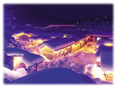 一入雪鄉(xiāng),獨(dú)具特色的房子便映入眼簾。層層疊疊的白雪從房頂順著屋檐一直垂到地上;潔白如玉的雪地上冒出一朵朵矮矮胖胖的雪蘑菇,如同天上的云朵掉落人間,輕盈可愛。雪鄉(xiāng)天黑得很早,晚上四五點(diǎn)時(shí)家家戶戶便點(diǎn)亮高掛的紅燈籠,整個(gè)村子像被施了魔法,變身為童話王國(guó),眼前的世界滿足了兒時(shí)我們對(duì)童話世界的所有幻想。三個(gè)小伙伴激動(dòng)地除了“哇”,什么都說不出,大自然的鬼斧神工無需半點(diǎn)修飾就已美得不可方物。
