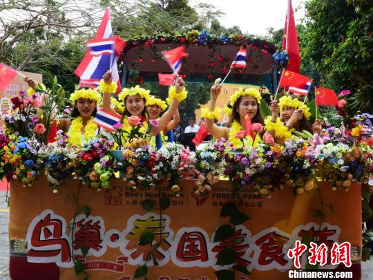 三亞一景區(qū)民俗活動中,苗家姑娘以最高禮遇“高山流水”接待游客 王曉斌 攝