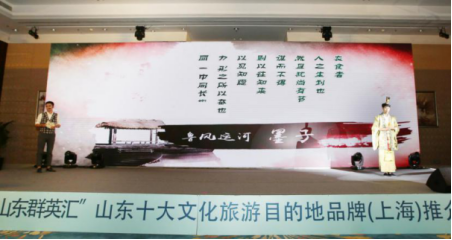 兩場推介會都以儒家文化為基調(diào),好客山東品牌為統(tǒng)領(lǐng),把動態(tài)推介、戲曲舞蹈、訂制視頻、互動游戲和設(shè)計大賽有機融為一體,聲光畫影,情景交融。特別訂制的《好客山東 精品旅游》視頻,邀請了山東省十大文化旅游目的地各品牌所在地的非遺傳承人、工匠藝人、博物館負(fù)責(zé)人、旅游企業(yè)管理者和優(yōu)秀導(dǎo)游等出境發(fā)聲,展現(xiàn)山東發(fā)展精品旅游的優(yōu)勢和決心。在動態(tài)推介環(huán)節(jié)特別推出了“小劇場”,由演員分別扮演東方圣地、仙境海岸和平安泰山等十個品牌的名人,引出相應(yīng)的旅游資源,活靈活現(xiàn)、新穎生動的推介形式博得現(xiàn)場嘉賓的陣陣掌聲。