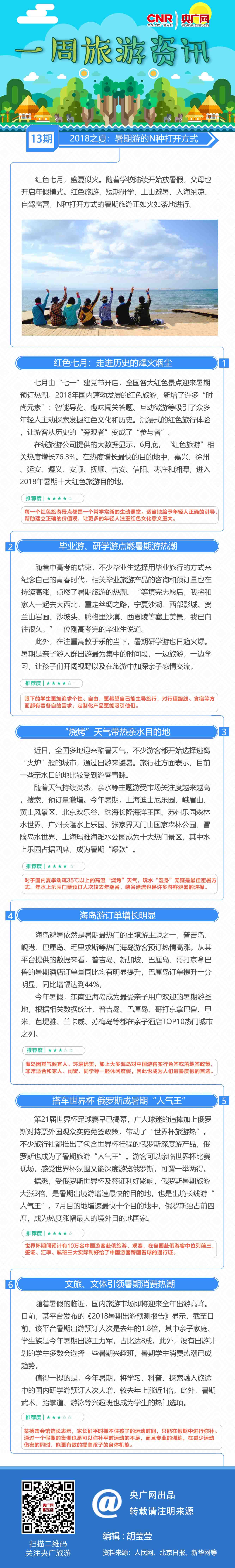 一周旅游資訊:暑期紅色游人次將過(guò)億