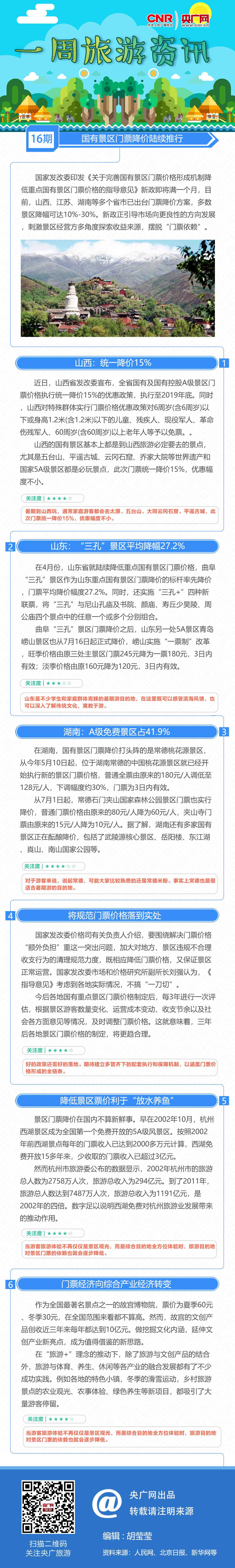 國家發(fā)改委印發(fā)《關(guān)于完善國有景區(qū)門票價格形成機制降低重點國有景區(qū)門票價格的指導(dǎo)意見》新政即將滿一個月,目前,山西、江蘇、湖南等多個省市已出臺門票降價方案,多數(shù)景區(qū)降幅可達10%-30%。