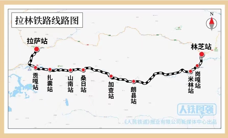 拉林鐵路起自西藏自治區(qū)拉薩市,經(jīng)山南市貢嘎縣、扎囊縣、乃東區(qū)、桑日縣、加查縣和林芝市朗縣、米林縣,到達(dá)林芝市區(qū),全長435.48公里,設(shè)計時速160公里,為國家I級單線電氣化鐵路,初期開通運(yùn)營辦理客貨運(yùn)輸業(yè)務(wù)的有貢嘎、扎囊、山南、桑日、加查、朗縣、米林、崗嘎、林芝9個車站。