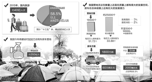 2015年7月,國(guó)務(wù)院審議通過(guò)的《關(guān)于進(jìn)一步促進(jìn)旅游投資和消費(fèi)的若干意見》提出,制定全國(guó)自駕車房車營(yíng)地建設(shè)規(guī)劃和自駕車房車營(yíng)地建設(shè)標(biāo)準(zhǔn),明確營(yíng)地住宿登記、安全救援等政策,到2020年,鼓勵(lì)引導(dǎo)社會(huì)資本建設(shè)自駕車房車營(yíng)地1000個(gè)左右。