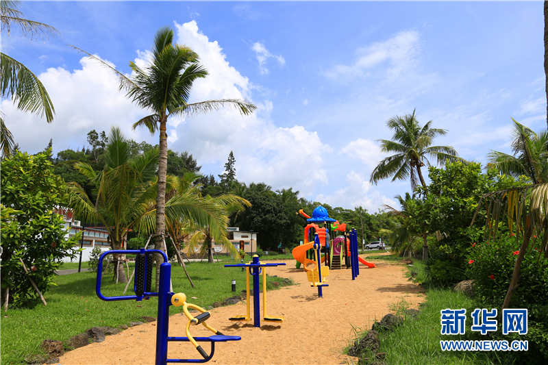 村里嶄新的健身器材和兒童游客設施。新華網(wǎng) 王雯君 攝