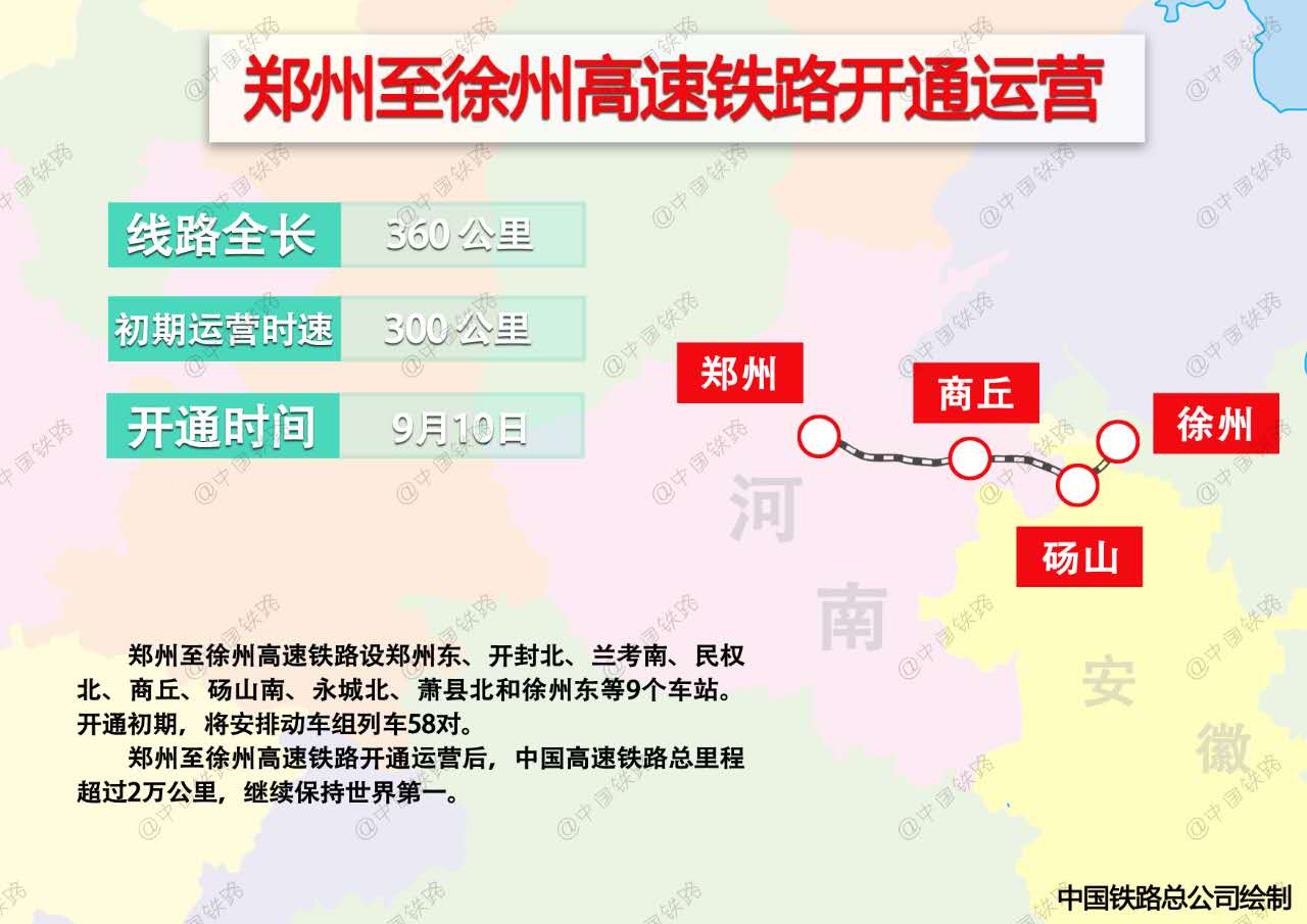 鄭州至徐州高速鐵路開通運營后,中國高速鐵路總里程超過2萬公里,繼續(xù)保持世界第一。