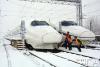 2018年1月4日,中國鐵路上海局集團(tuán)公司合肥南動(dòng)車運(yùn)用所內(nèi),職工正在為即將上線運(yùn)行的動(dòng)車組進(jìn)行掃雪除冰。(央廣網(wǎng)發(fā) 謝冰飛攝) -
