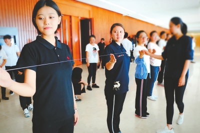 近日,敦煌國(guó)際會(huì)展中心大廳內(nèi),敦煌國(guó)際文化發(fā)展公司對(duì)服務(wù)保障人員開(kāi)展迎接手勢(shì)禮儀培訓(xùn)。通訊員謝沛宏