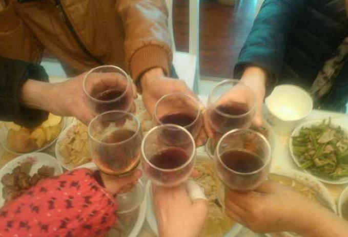 @倪子珺:昨天吃的年夜飯,大紅燈籠高高掛,喜慶,吉祥!紅酒包含著紅紅火火,甜甜蜜蜜。16人菜,最有特色是四喜丸子!綠豆,肉,魚,藕。團團圓圓,合合美美!