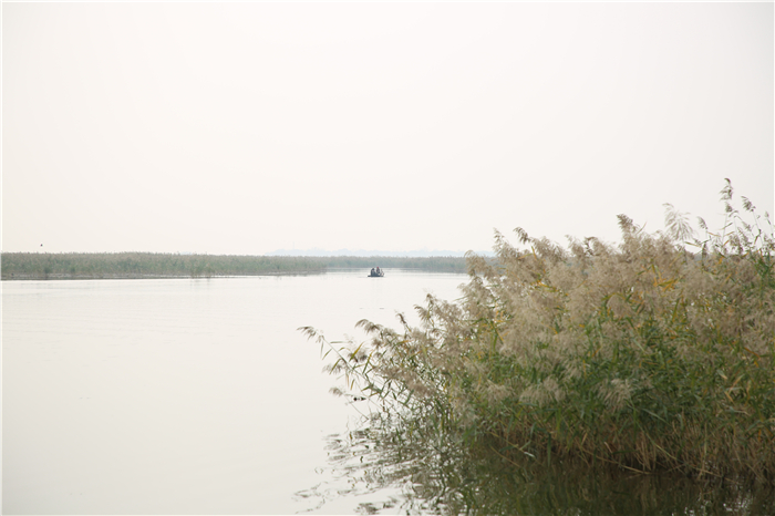 站在船上遠(yuǎn)眺,一層薄霧籠罩著碧綠的湖面,水光瀲滟、蘆葦搖曳,魚兒相逐、群鳥翩躚,幾只白鷺撲棱著潔白的翅膀,悠然地飛向蔚藍(lán)的天際。天水相接之處,幾座蒼翠的小山點(diǎn)綴其間!罢娴奶珘延^了,跟海一樣,一眼望不到邊!闭驹诖^,采訪團(tuán)記者們?nèi)滩蛔「袊@,紛紛拿出相機(jī)、手機(jī)拍照留念。