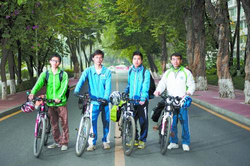 1月24日,23歲的陳悅建、陳徐濤,21歲的鄭建民,22歲的楊澤彪(從左至右)4名廣東籍大學(xué)生準(zhǔn)備從廣州出發(fā),用騎行的方式返鄉(xiāng)。經(jīng)過兩到三天的騎行,他們陸續(xù)安全到家。他們說:“想要真切地知道依靠自己的力量,到底可以走多遠(yuǎn)。”梁旭 攝
