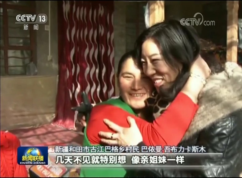 和田市古江巴格鄉(xiāng)村民 巴依曼·吾布力卡斯木:是的,我叫她姐姐。幾天不見就特別想,像親姐妹一樣。