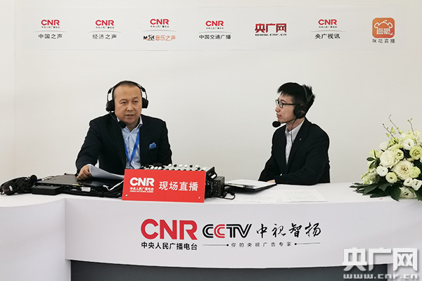 陜西秦皇大劇院演藝有限公司總裁王湧(左)接受采訪