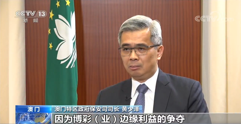 澳門特區(qū)政府保安司司長 黃少澤:回歸之前的澳門的社會治安是非;靵y的,因為博彩(業(yè))邊緣利益的爭奪使得黑社會之間經(jīng)常打斗,所以那個時候兇殺、綁架、縱火還有搶劫是經(jīng)常發(fā)生的。所以用一句話來形容:那時候社會是驚恐,整個社會是混亂驚恐的。