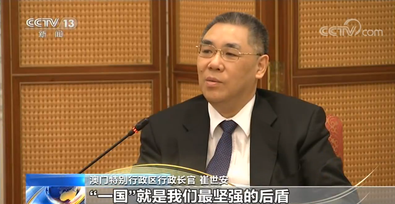 澳門特別行政區(qū)行政長官 崔世安:“一國兩制”,“一國”就是我們最堅強的后盾。我們盡我們最大努力去融入大灣區(qū)的發(fā)展,是國家給了我們一個很寶貴的機會,突破了澳門很多短板。我衷心祝愿澳門特別行政區(qū)繁榮穩(wěn)定,明天會更好。