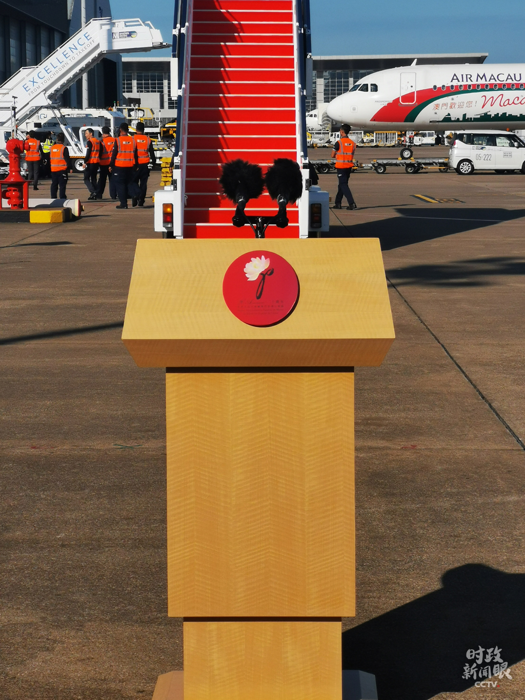 △16時許,習近平乘坐的專機徐徐降落在澳門國際機場。(國廣記者李晉拍攝)