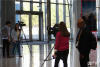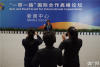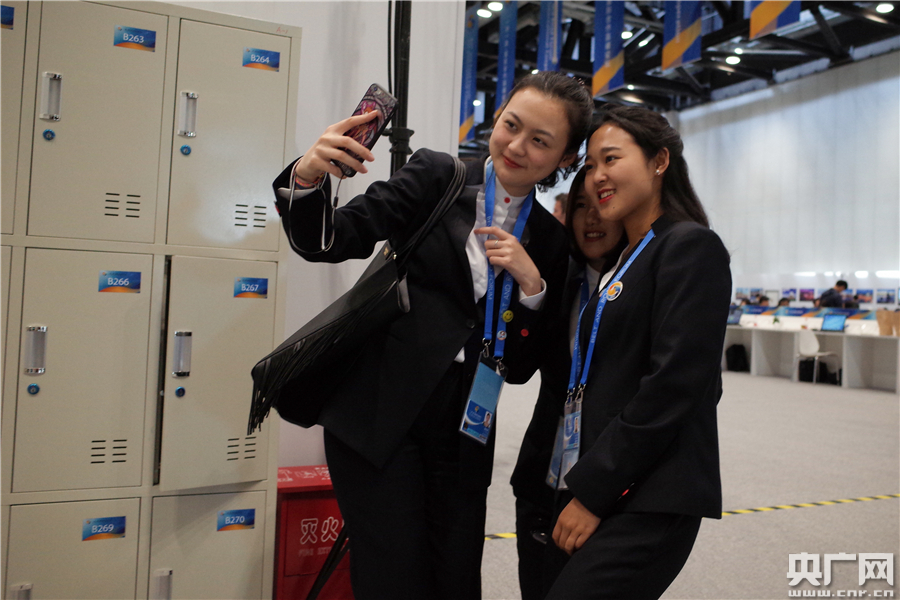 在“一帶一路”國(guó)際合作高峰論壇展廳內(nèi),兩名記者在拍照留念。(央廣網(wǎng)記者 王永康 攝) -