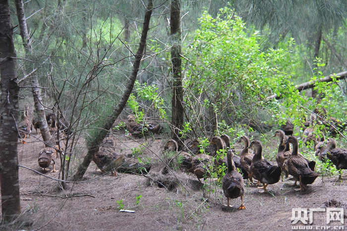 馬裊海鴨養(yǎng)殖基地,位于臨高縣博厚鎮(zhèn)道灶村沿海一帶。這里有大面積的紅樹林、海溪水交錯的河流及淺灘;每當海潮退去,大量的海蟹、魚蝦和貝類會寄居在這些沿海植被上,成為海鴨的天然食糧。因此,該地生長的海鴨毛色好、肉質(zhì)鮮,頗有名氣。
