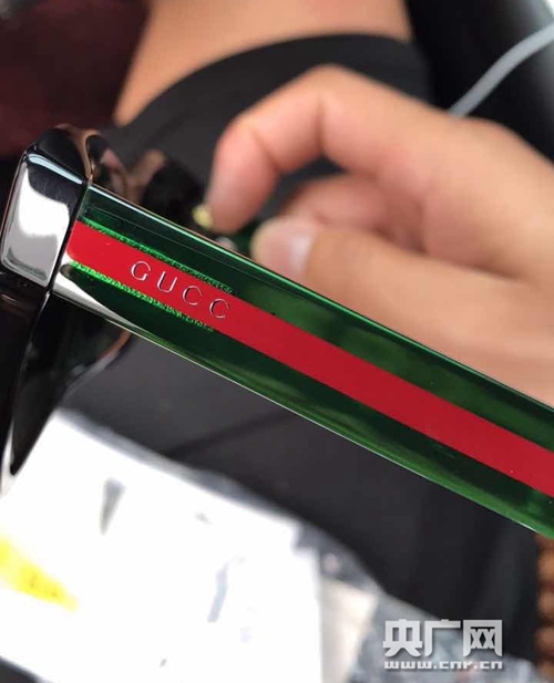 8月16日,來(lái)到北京維權(quán)的馮先生向記者展示了“Gucc”眼鏡圖片。圖片中,鏡腿上清晰的印著“Gucc”四個(gè)字母,而“i”卻不見(jiàn)了蹤影。