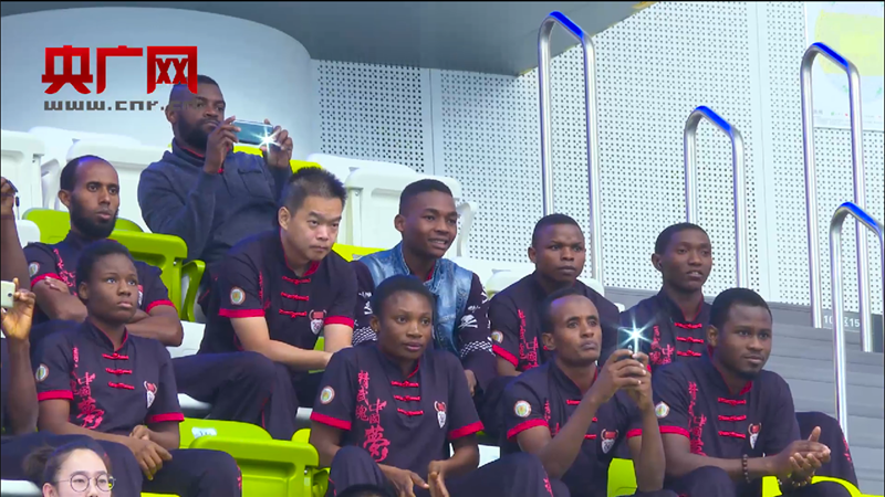 在比賽場館的觀眾席上,記者見到了一群來自非洲五國的朋友們。從今年7月起,他們從各自的國家聚集在天津霍元甲文武學(xué)校,開始了為期三個月的武術(shù)學(xué)習(xí)。