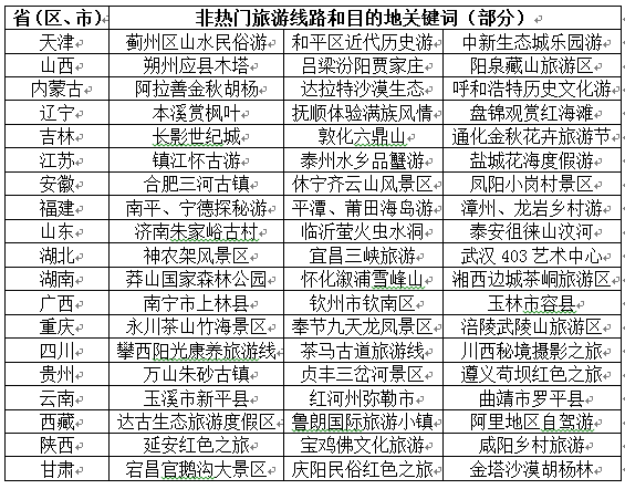 國家旅游局整理的一份非熱門旅游線路和目的地關鍵詞