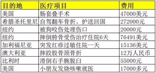 其實,在高昂的醫(yī)療費用中,最難以承擔的是醫(yī)療轉運回中國的費用,至少需要幾十萬元人民幣。那么,又該如何避免天價醫(yī)療賬單?首先,前往醫(yī)療費用昂貴的國家時,提前購買足夠醫(yī)療保額的保險產品,尤其是當你準備前往醫(yī)療費用昂貴的國家,如歐洲、美加、日本等地。